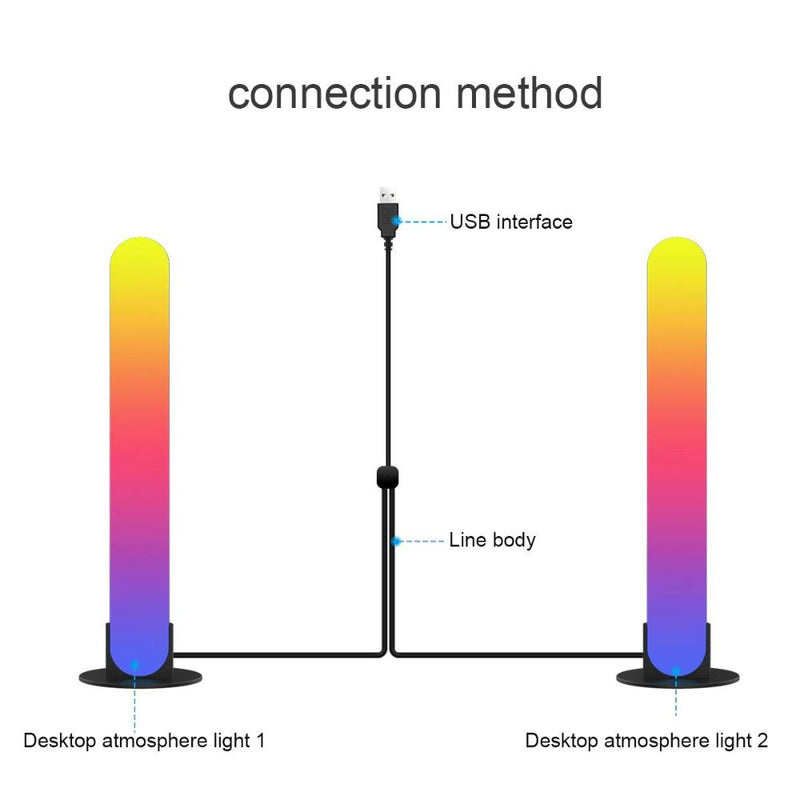 The smart ambient light bar can be installed in different ways through the base and bracket in the package, just use a strong adhesive to fix the light bar to the back of the TV. Alternatively, use the provided stand to place a simple stand next to or behind your TV/computer. Lays flat without the use of stands and bases.
